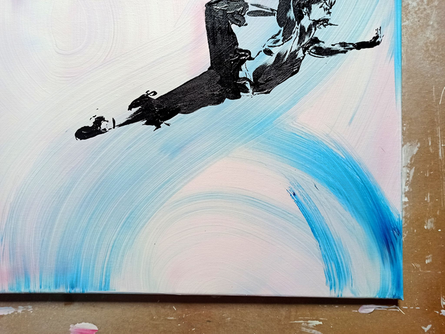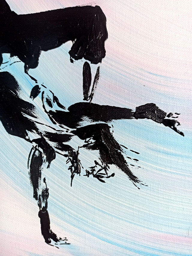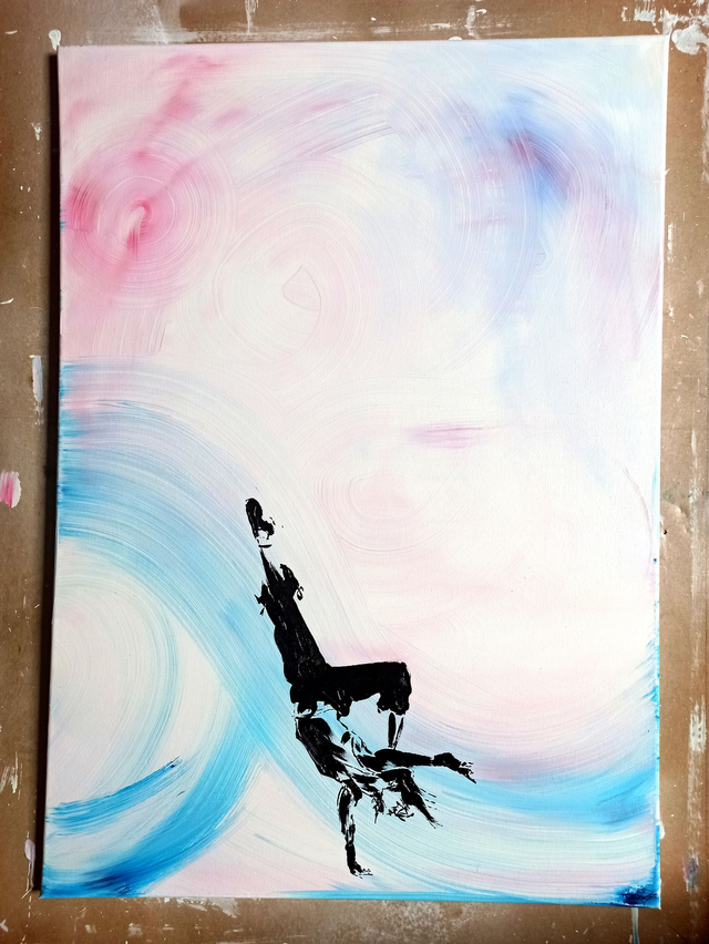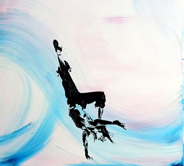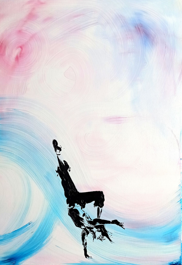 J'ai réalisé cette peinture afin de dévoiler comment un simple coup de pinceau épuré pourrait représenter une personne, et donc laisser l'imagination représenter ce qui est dans cette toile.